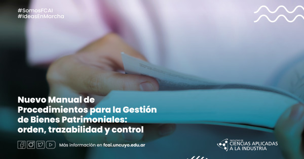 Para fortalecer la administración responsable de los recursos, la Facultad de Ciencias Aplicadas a la Industria formalizó e implementó, mediante Resolución N.° 038/2026, el Manual de Procedimientos para la Gestión de Bienes Patrimoniales.