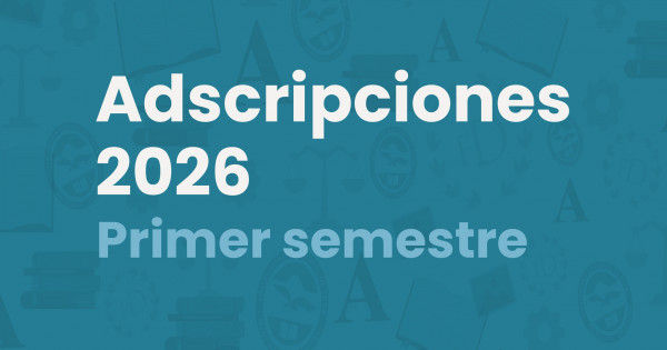 Facultad de Derecho 03/03/2026 Convocatoria para Docentes Adscriptos 2026 Se abren las inscripciones para aquellos que deseen postular a las adscripciones correspondientes al primer semestre del 2026. El plazo de presentación para el primer semestre vence el 20 de marzo de 2026. Etiqueta: inscripción - proceso - profesorado